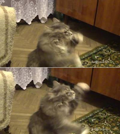 飼い主さんの陽気な声に合わせて踊るネコさん