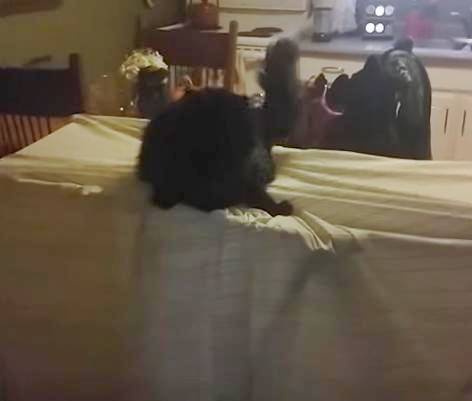 ココは呪いの家 テーブルに飲み込まれていくネコさん