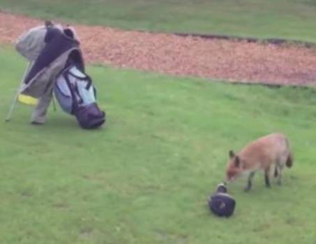 どうもキツネくんはゴルフカバーが気になり
