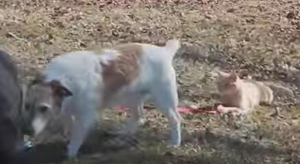 リードをネコさんにキャッチされ動けなくなるワンコ|あに丸ズッキーニ