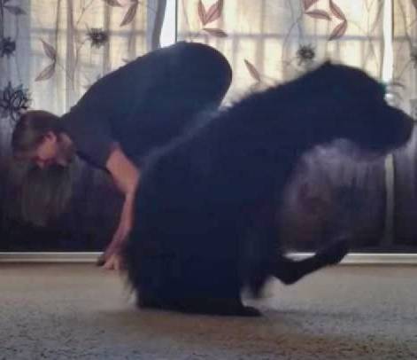 飼い主さんのヨガをみて自分もヨガしちゃうワンコWW
