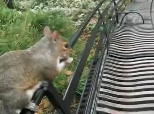 すごく人馴れしたリス君は平気で近づいてエサをとって食べるのですが、