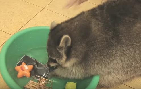 まるでお遊戯みたいになんでも洗うアライグマくん