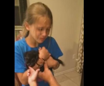 8歳の誕生日プレゼントに感激のあまり泣き出す少女