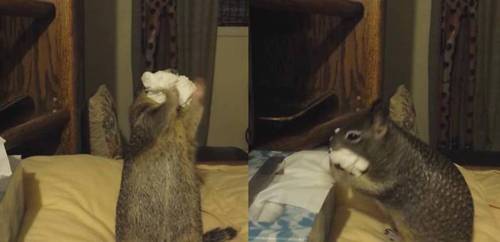 ティシュペーパー ほっぺに詰めまくるリスさん