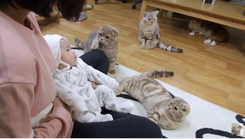 人の赤ちゃんに初めて出会った時のネコの反応|あに丸ズッキーニ