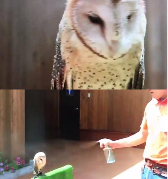 朝ニュースで見たメンフクロウ。夏さ対策で飼育員さんに水かけてもらって、嬉しさ隠しきれない感じがドチャカワ。 pic.twitter.com/lCiXr7jTmL