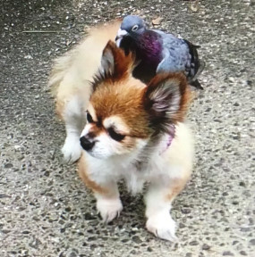 おばあちゃんの家の犬と鳩可愛すぎへん?????? pic.twitter.com/qwPAlm9OyG