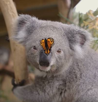 チョウチョさんと戯れるコアラ君がかわいい|あに丸ズッキーニ