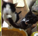 最近ゴハンの用意を待ってるにっこが、ゴハンを見ながら片手で隣の大福をボコボコにする習慣ができたんだけどなんで pic.twitter.com/7wqVou1SIr