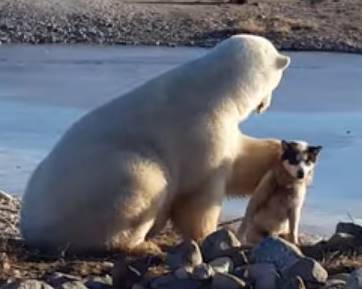ワンコをナデナデする白クマさん