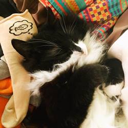 取り込んだ洗濯物の中で幸せそうに寝てるな~と思ったら、靴下の柄が大変良い仕事をしてた pic.twitter.com/1ODGxcPBqj