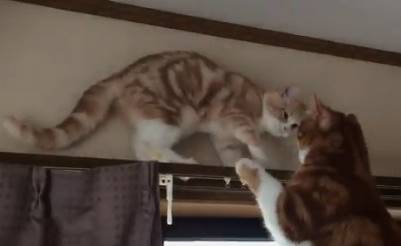 兄の心配をよそに、あり得ない方法で方向転換する妹君は体操選手か⁉︎#猫 pic.twitter.com/H6awppFdYn— まる♂ふく♀ (@KtwVk9) 2018年2月1日