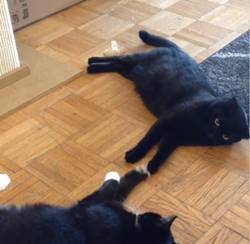 "Let's hold paws, sis... Why won't you hold my paw?? FINE I'll just be over here forever alone"