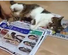 ただ単に新聞に乗るのが好きなのではなく、「今」見てるのをジャマするのが好きなのであって、隣に昨日の新聞置かれてもダメー pic.twitter.com/bUPO5PDOa7
