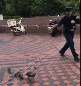 見てー!!!カモの親子が警備員さんたちに池まで誘導されててめちゃくちゃ可愛かった pic.twitter.com/CRbtBa0PCM