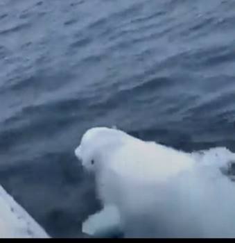 Playing fetch with a beluga whale, with a rugby ball! Credit to u/yourboyfoster. from r/aww