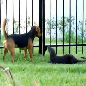 野生のカワウソと一緒に遊んでるワンコ|あに丸ズッキーニ