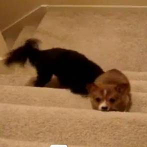 子犬の階段登りを助けるワンコ|あに丸ズッキーニ